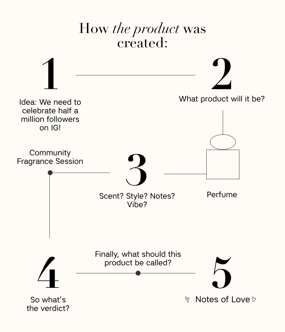 En hyllest til de korte øyeblikkene foran speilet, når fremmede blir venner, om så bare for ett minutt. Duften fanger følelsen av å stå side om side, raskt finne varme og fellesskap. En varm, solrik blanding med en juicy twist som blir igjen på huden på en myk og minneverdig måte. Utviklet sammen med CAIAs community.