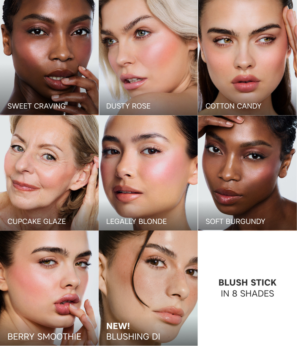 Velg valgfri nyanse av Blush Stick sammen med Angled Sculpting Brush F06.